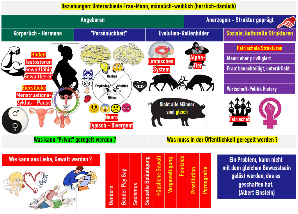 | Biologisch | Persönlichkeits- Eigenschaften (m,w) | Kultur-Anerzogen | Evolution Paarungsverhalten |