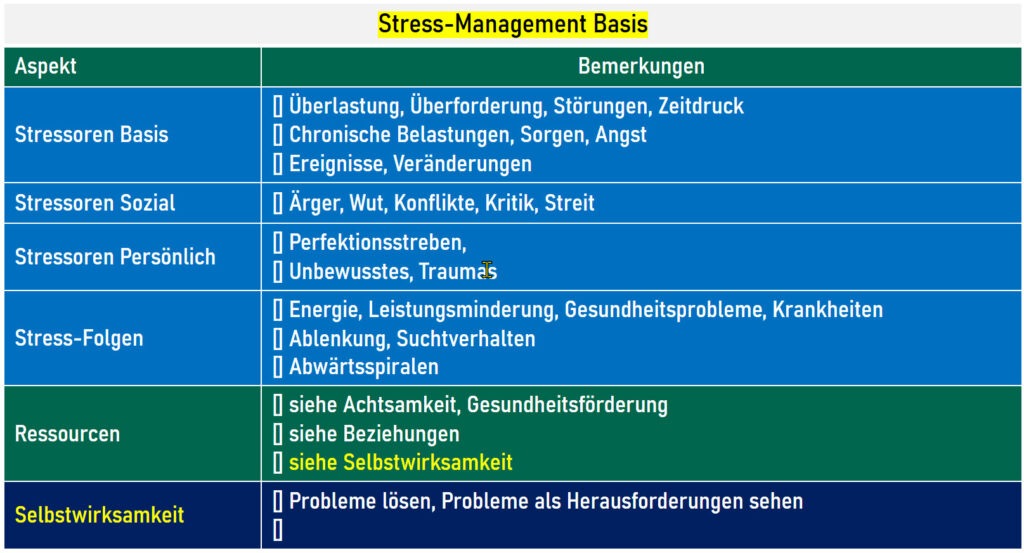 | [] Stressoren-Übersicht | [] Stressgrundlagen [] Gesundheitsförderung [] Problem-Arten [] Energie, Müde | [] Lernprojekt: Themen [] Ressourcen-Übersicht |